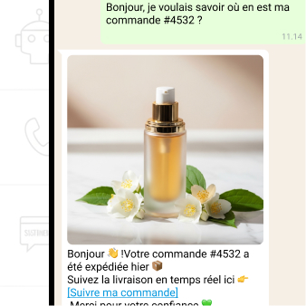 Relances automatisées pour les paniers abandonnés, promotions ou rappels.